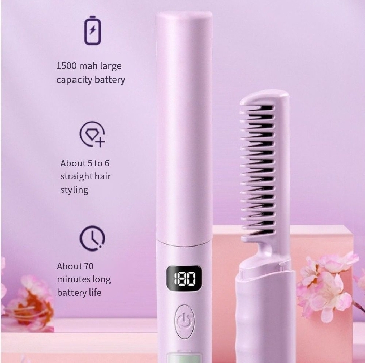 KD Cordless Wireless Rechargeable Travel Comb Hair Straightener